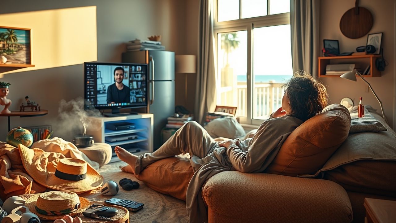 「理想假期變網路循環:夢想與現實的荒謬交錯」